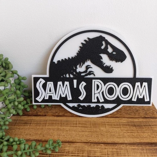 Personalised Dinosaur Name Sign 3D Printed Jurassic Wall Door Decor Kids Home