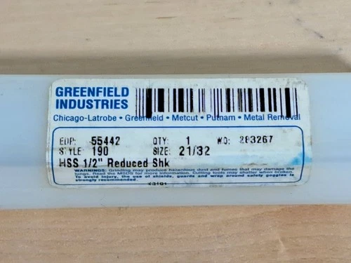 Greenfield Chicago-Latrobe 55442 Silver&Deming 21/32" Bit Reduced Shank 1/2"