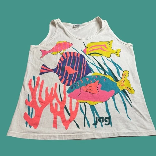 Vintage Jag Tank Top S/M Fish Reef Graphic Coastal Surfwear Shirt USA