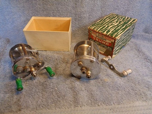 Vtg USA PFLUEGER 1893 Akron & 1943 Trump Fishing Reel & Box Lot PARTS OR REPAIR