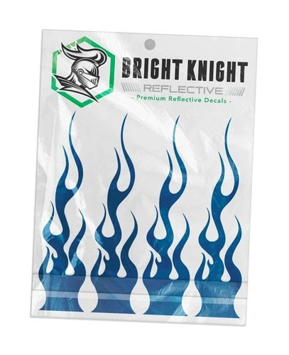 Reflective Flame Stickers - Set of 4 Flame Dirt Bike Stickers for Frame, Blue