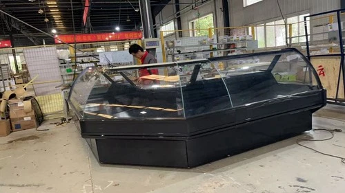 Curved Glass Corner Connection Unit Refrigerated Fresh Meat, Sweet Display