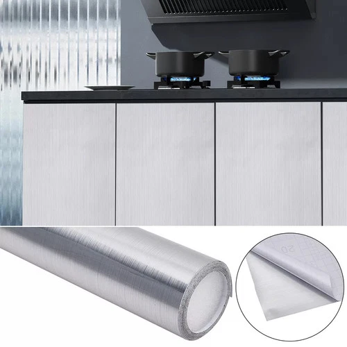 5M Silver Wallpaper Stainless Steel Self Adhesive Fridge Furniture Vinyl Wrap UK