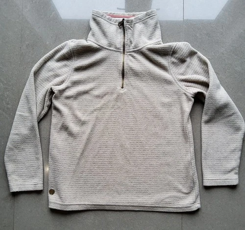Regatta Women's High Neck 3/4 Zip Fleece Jumper UK 14 Beige Grey Striped