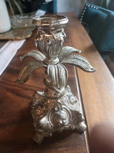 Vintage Gothic Hollywood Regency Palm Tree Style Candleholder Heavy Brass