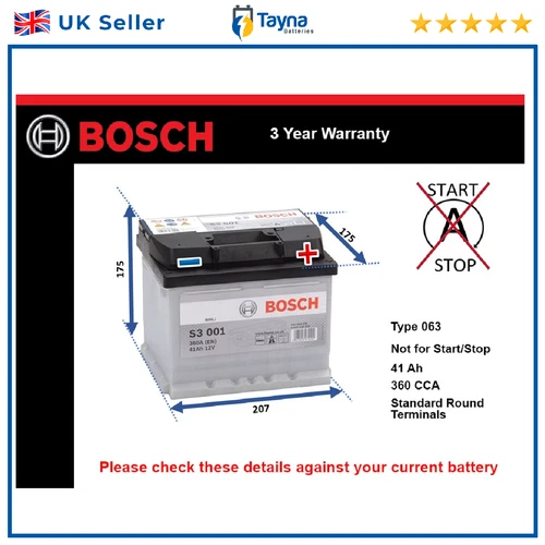 Battery fits INNOCENTI REGENT KORAL ELBA MINI 1.0 1.1 1.3 1.5 74 to 94 Bosch 063