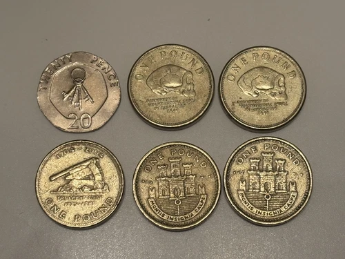 British Territory Gibraltar Coins UK 20p £1 The Great Siege Occupation - Cannon