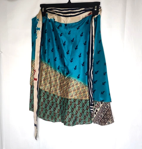 Earthbound Wrap Skirt Womens OS 44" Green Colorful Boho Earth Bound Knee Layered