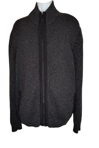 Daniel Hechter Paris Sweater Mens XXL Cardigan Front Zipper Black Gray Pockets