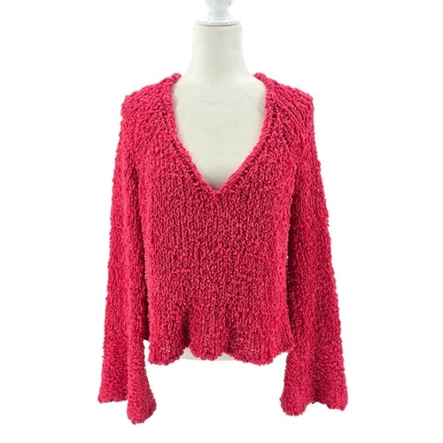 Free People Womens Small Sweater Pullover Chunky Shaggy Open Knit Flared Sleeves