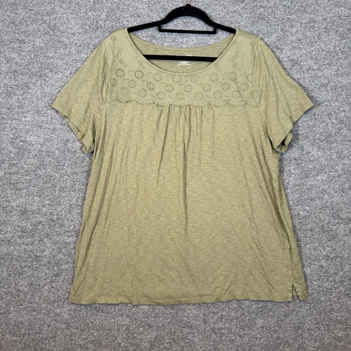 Talbots Shirt Womens 2X XXL Green Short Sleeve Tshirt Eyelet Lace Plus Size