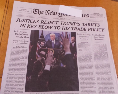 New York Times February 2026 Justices Reject Trump's Tariffs; Epstein & Elites F