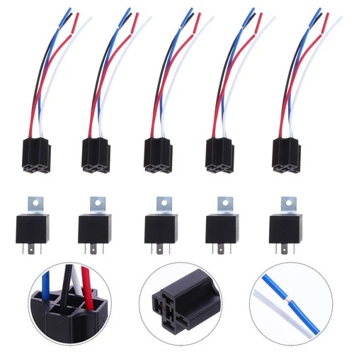 5 Pcs Relay Socket with Heavy Duty Tinned Copper Wires for Automotive Headlight