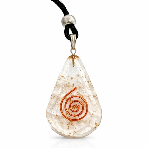 Orgone Selenite Necklace Pendant Spiritual Awareness Teardrop Copper Coil Gift