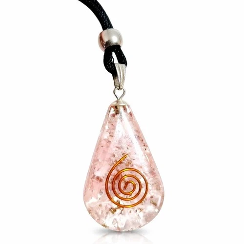Orgone Rose Quartz Necklace Pendant Love Stone Rose Quartz Teardrop Copper Coil