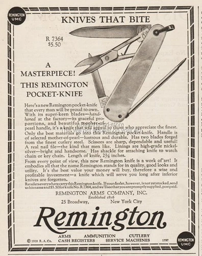 1928 Remington Pearl Pocket Knife UMC R7364 Scissors vintage magazine ad