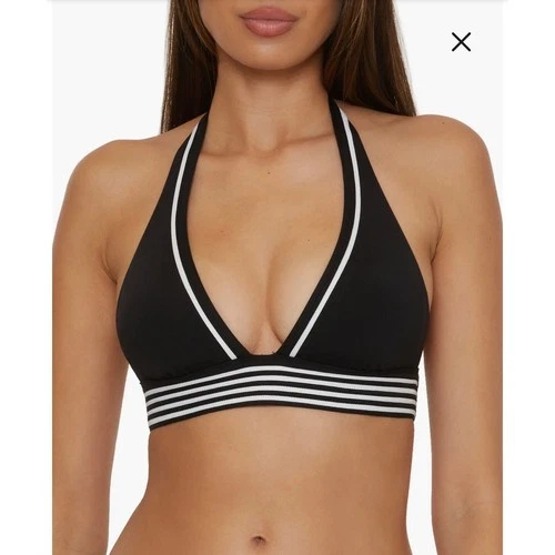 Trina Turk Womens Black White Striped Halter Bikini Top Size 6