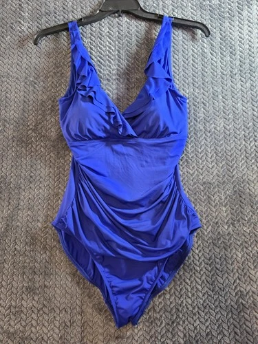 Lauren Ralph Lauren Ruffle One Piece Swimsuit 14 Blue Underwire Vacation Beach