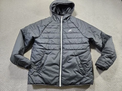 Nike Jacket Men Large Therma Fit Repel Puffer Hooded Black Coat Reversible