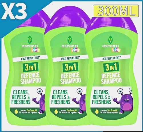 3 X Escenti Kids Head Lice Repellent 3 in 1 Defence Shampoo / Conditioner 300ml