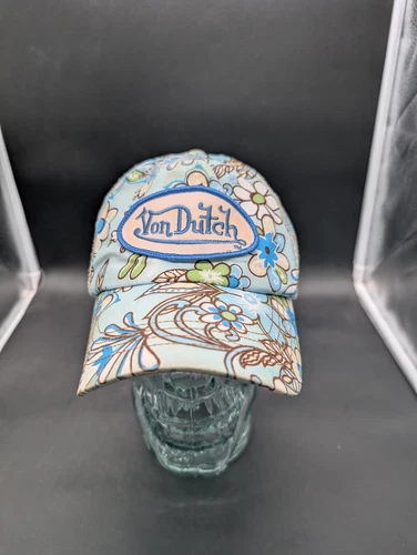 VON DUTCH Y2K 90s Designer Snapback Hat Blue Floral Mesh Trucker Retro Logo RARE