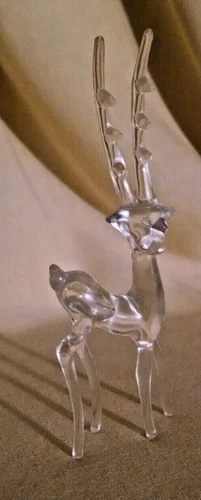 REINDEER FIGURE ACRYLIC VINTAGE CLEAR DEER ORNAMENT FIGURINE CHRISTMAS PLASTIC.