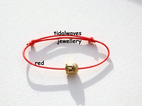 Waxed Cotton Cord/String ANKLET Large Tibetan Gold Coloured Buddha Head