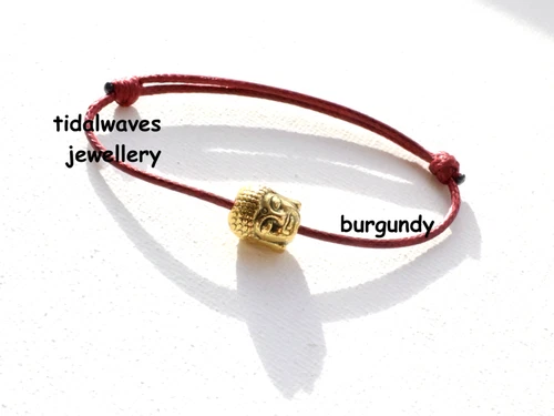 Waxed Cotton Cord Bracelet Large Tibetan Gold Coloured Buddha Head