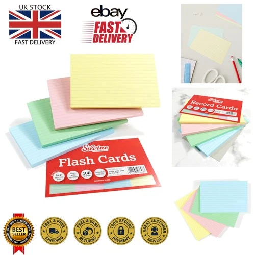 Colorful 6x4 Record Cards – 100 Ruled for Effective Note-taking and Revision