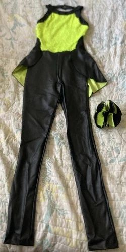 Revolution Neon Yellow And Black Sequin Jazz Costume With Hair Clip Girls Size M