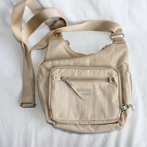 Baggallini RFID Cross City Bagg Beige Crossbody Purse Water Resistant Nylon