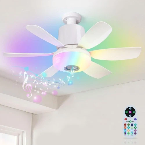 18.5" Modern Celling Fan Light w/ RGB & Bluetooth Speaker, 3 Speeds E27 Base
