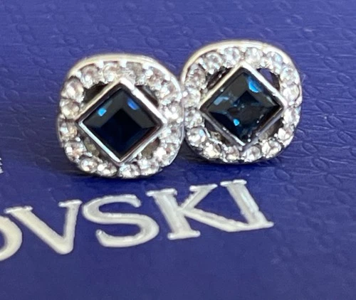 Genuine Swarovski Signed Swan Crystal Stud Earrings Silver Sparkly, New , boxed