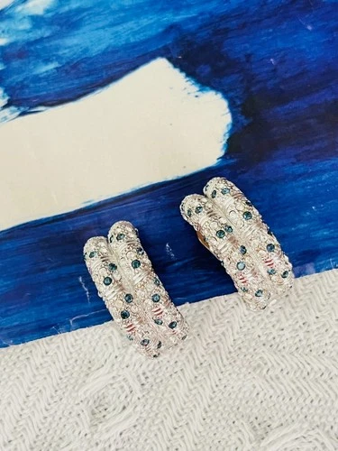 Christian Dior GROSSE 1970s Sapphire Clear Crystals Dome Clip Earrings, Silver