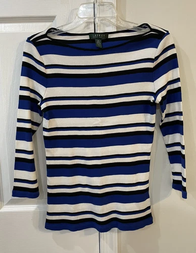 Lauren Ralph Lauren Women’s Long Sleeve Shirt Sz M Striped Ribbed