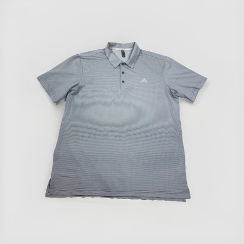 Adidas Golf Polo Shirt Mens L Blue Striped Ribbed Short Sleeve Breathable