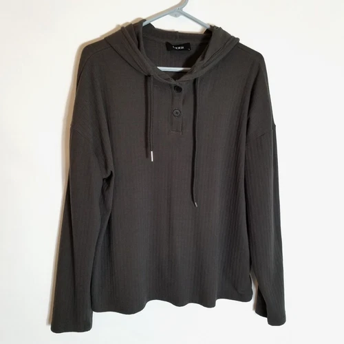Cider Hoodie Women's Large Dark Gray Ribbed Pullover 2 Button Drawstring