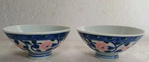 2 Antique Maebata Porcelain Japanese Rice /Soup Bowls Gokusai Design 4.3/4" W