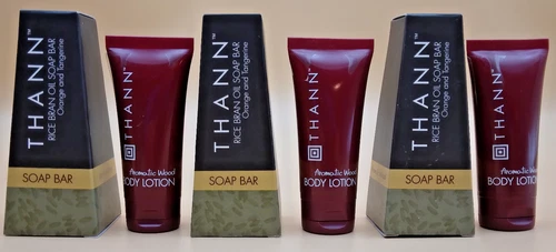 Thann Rice Bran Oil Soap Bar 1.3 oz & Body Lotion .75 oz Travel Size 3 Sets