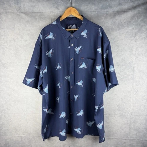 Retro Rifle Shirt Mens 4XL Magnum Tropical AOP Button Down Short Sleeve Blue
