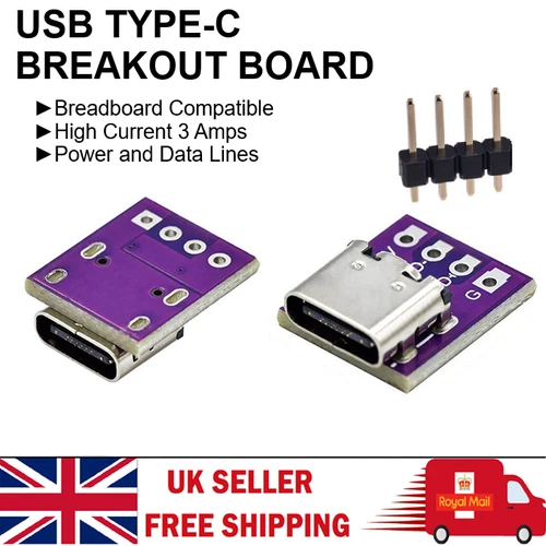 USB Type C Breakout Board USB-C PCB, USB to DIP, Female Socket, Arduino ESP32