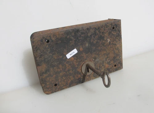 Old Antique steel brass trimmed left hand rim lock (RL503)