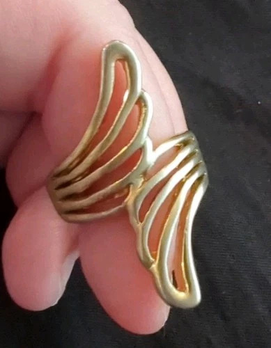 Avon Cocktail Ring Distressed Gold Bronze White Crystals Sz 6.5 Adjustable