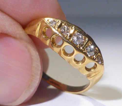 18ct Gold Diamond Ring UK Hallmark 3 grams 5 Stone Size O Gift Box