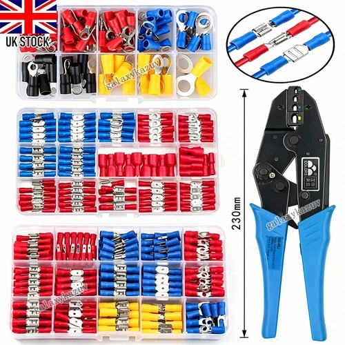 Electrical Wire Terminals Insulated Crimp Connectors Spade, Fork, Ring, Butt Set