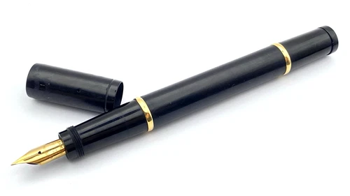 VINTAGE WATERMAN 46 FOUNTAIN PEN IN BLACK WITH 18K RINGS 18K GOLD FINE NIB SB