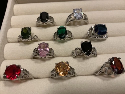 lot of 10 costume rings,all new, various styles and sizes,tray not included