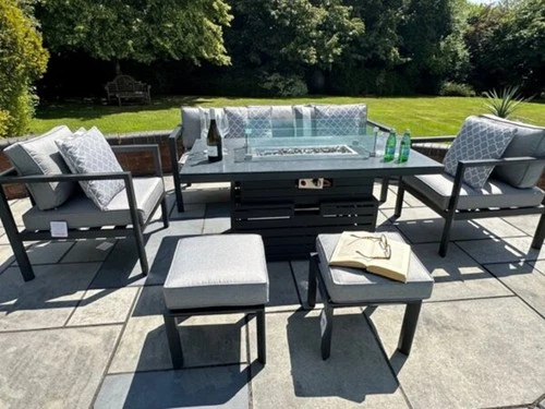 Aluminium Dining Set- 3-Seat Sofa, 2 Armchairs, 2 Stools, Rising Table, FIRE PIT
