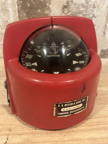 ⭐️E.S. Ritchie & Sons, Inc. Red Explorer Compass Red⭐️Plastic Cracked Read⭐️