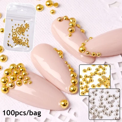 100 Pcs 3D Nail Rivet Flat Back Nail Art Rhinestones Decoration Metallic Beads